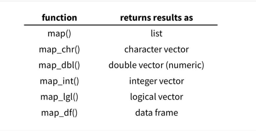 整个过程,可以想象 list/vector 是生产线上的盒子,依次将里面的元素,送入加工机器。 函数决定了机器该如何处理每个元素,机器依次处理完毕后,结果打包成list,最后送出机器。